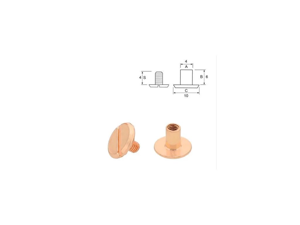 Kovový zdobený opaskový šroub s povrchovou úpravou (růžové zlato) se používá k spojování pásků, obojků. Opaskový šroub s nepřehlédnutelným vzorem dodá vašim výrobkům potřebnou eleganci a styl. Výhodou šroubovacího spoje je rychlá a snadná manipulace například při výměně opaskové přezky